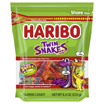 HARIBO GUMMI CANDY TWIN SNAKES SWEET & SOUR H/B 8.3OZ