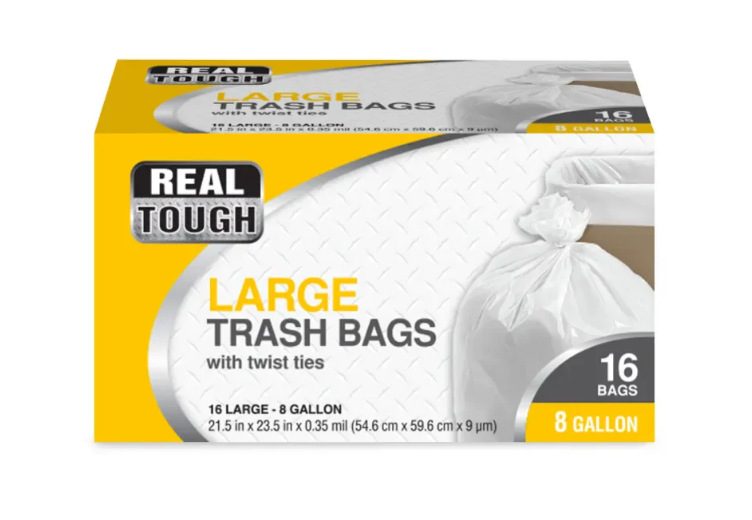REAL TOUGH TRASH BAGS FLEXIBLE STRENGTH 8GAL 16CT