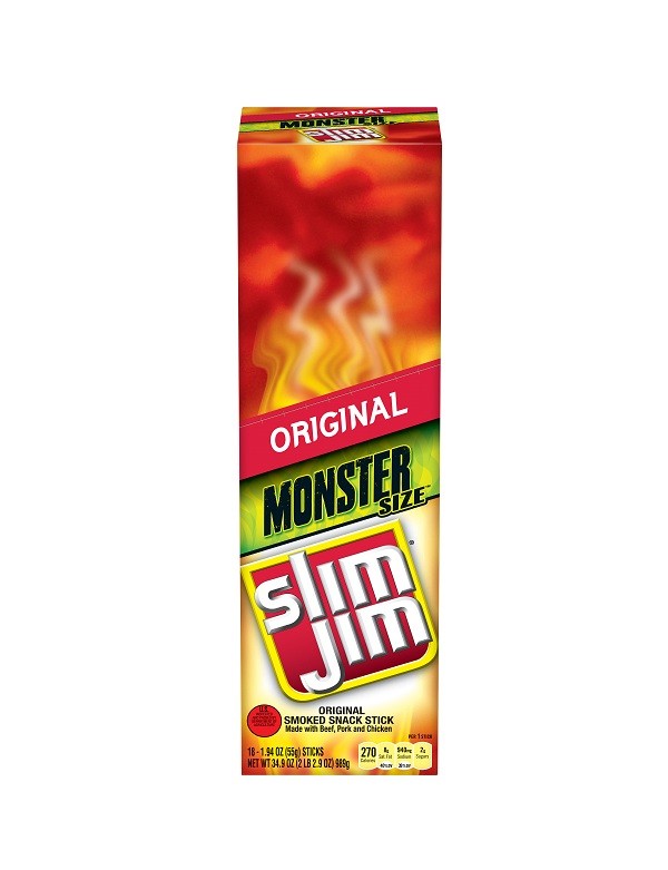 SLIM JIM SMOKED SNACK STICK 1.94 OZ |PACK OF 18 | MONSTER SIZE ORIGINAL