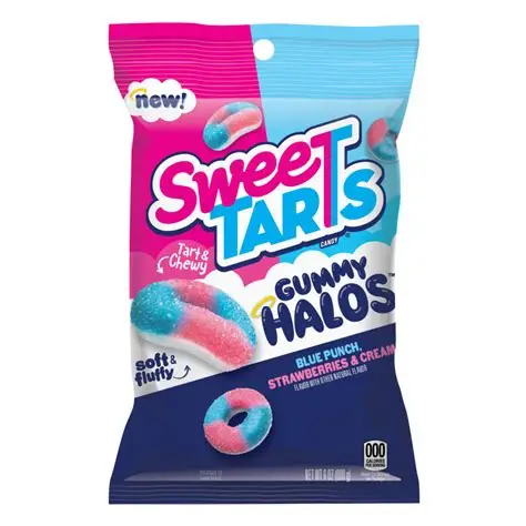 SWEETARTS GUMMY HALOS BLUE PUNCH STRAWBERRIES & CREAM H/B 6OZ